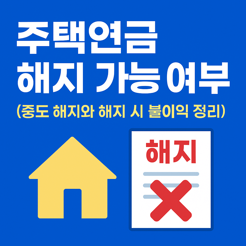 “주택연금은 한 번 가입하면 끝까지 유지해야 한다?”의외로 많은 분들이 이렇게 알고 계시더라고요.하지만 실제로는 그렇지 않습니다.주택연금도 일정 조건이 충족되면 해지할 수 있습니다.다만, 절차가 간단하지 않고, 잘못 해지했다가는 손해가 생길 수도 있죠.오늘은 한국주택금융공사(HF)의 기준을 바탕으로‘주택연금 해지 가능 여부’와 주의할 점을 실제 경험자 입장에서 쉽게 풀어보겠습니다. 🔗 한국주택금융공사 공식 홈페이지 바로가기 💬 주택연금 자주하는 질문 보러가기 주택연금, 기본부터 다시 보기주택연금은 말 그대로 내 집을 담보로 연금을 받는 제도입니다.55세 이상이라면 누구나 신청할 수 있고,집을 팔지 않아도 매달 일정 금액이 통장으로 들어옵니다.그래서 “평생 월세처럼 받는 내 집 연금”이라 불..